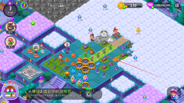 4、合并成长中的月亮花,使其升级,产生更多资源,助力游戏发展。
