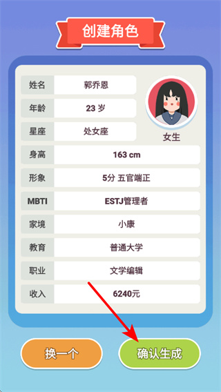 1、开启游戏后,创建角色,角色创建是开启恋爱模拟的关键操作,创建后可定制角色的各项属性,开启恋爱匹配相处之旅。