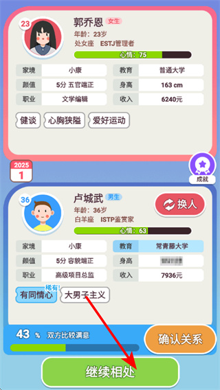 4、在恋爱相处中调整对象,对象调整是优化体验的重要操作,调整后可更换相处对象,寻找恋爱伴侣以丰富游戏体验。