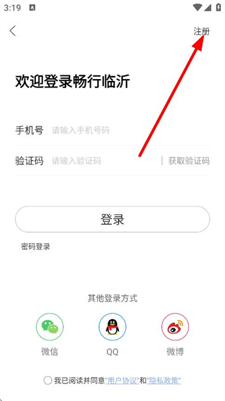 3、随后即可在登录注册页面,点击注册,进入注册页面。