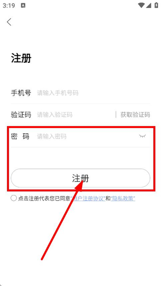 5、设置密码,勾选同意相关协议后点击注册,完成注册操作。
