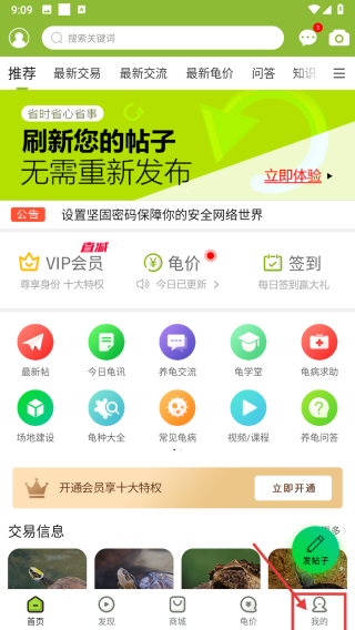 1、打开养龟交流类APP,点击底部我的选项,进入个人中心页面。