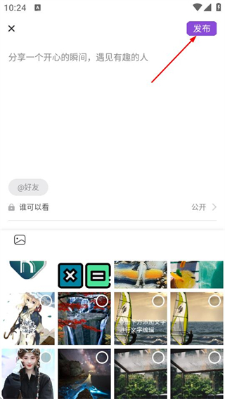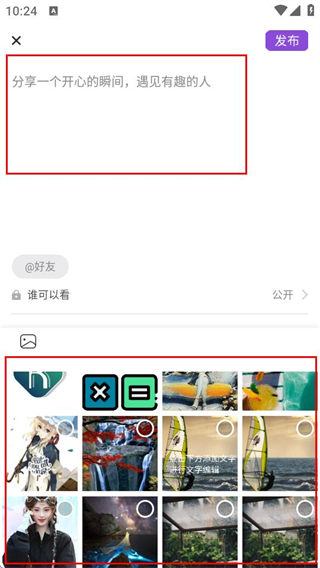 2、在发布界面输入文字内容,选择图片,完成内容编辑。