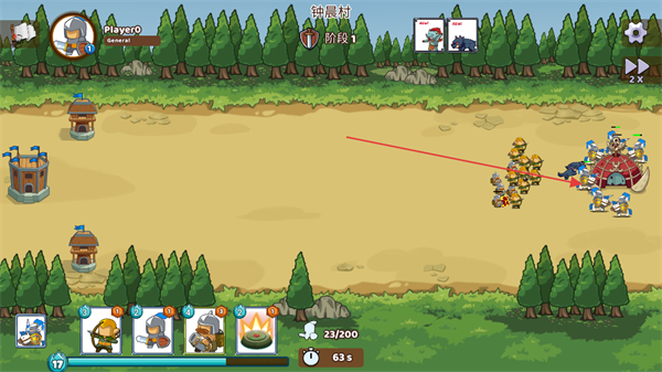 3、指挥士兵队伍向敌方阵地推进,与敌人展开战斗,消灭敌方单位。