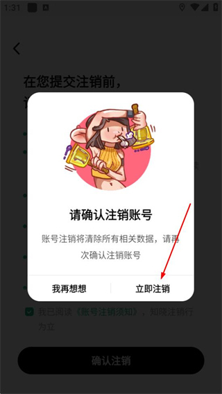 7、在确认注销弹窗中点击立即注销按钮,注销完成。