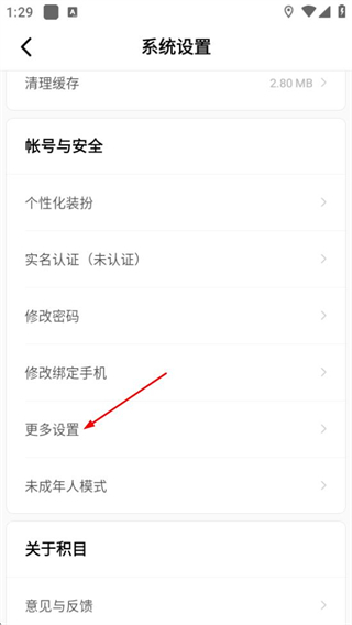 3、在系统设置界面点击更多设置,进入更多设置界面。