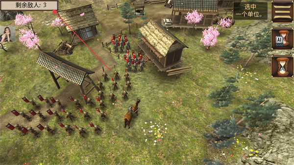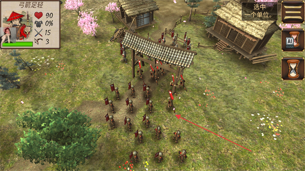 2、在战场中选中弓箭足轻等单位,指挥其在村庄区域战斗,推进战线。