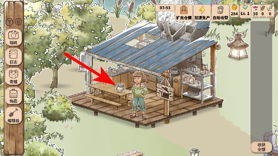 3、投喂完青蛙后,可以在制作区域的罐子处进行食材处理,这是加工资源、制作食物的关键步骤。