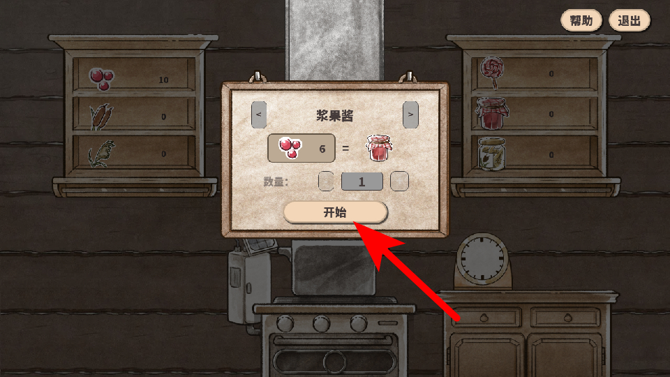 4、在制作的界面,我们需要准备好材料后点击开始按钮,制作相应物品,用于投喂青蛙或完成任务。