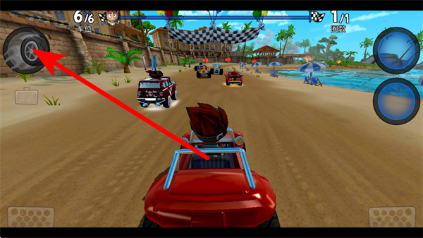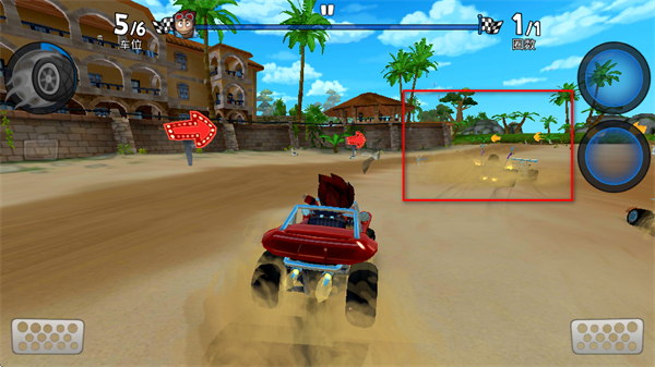 2、通过左侧操作按钮控制赛车方向,在赛道上驾驶赛车与其他车辆竞技。