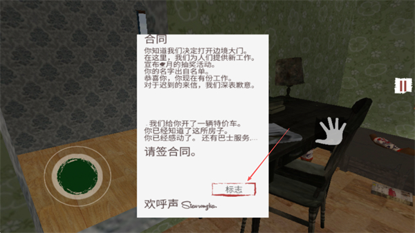 2、阅读信件中的合同,点击标志确认签署,获取新任务和资源。