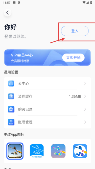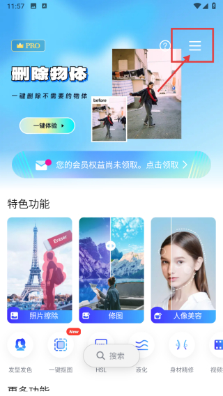 1、打开图片编辑类APP,点击右上角菜单按钮,进入个人中心页面。