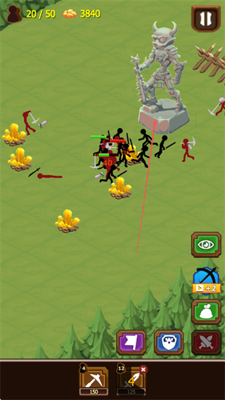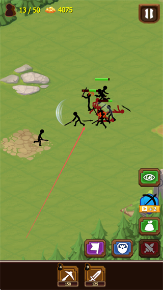 摒弃传统横版模式,改用竖屏上帝鸟瞰视角,火柴人造型更精致,战役场景细节丰富,战斗画面清晰直观,带来全新视觉体验。