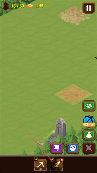 3、点击下方工具按钮,如镐头、刀剑等,升级或部署士兵,增强战斗能力。
