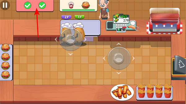 3、当左上角出现绿色对勾提示时,说明餐品配送完成,这是关卡推进的关键反馈,留意该提示可掌握经营进度。