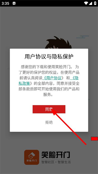1、在用户协议与隐私保护弹窗中,点击同意,进入登录页面。