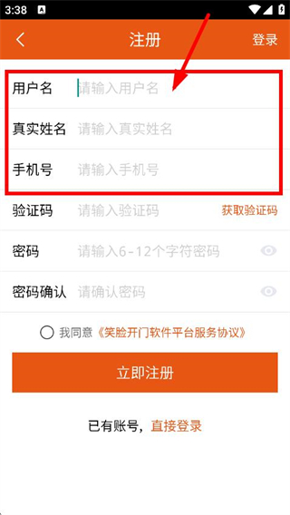 3、随后我们可以在注册页面,填写用户名、真实姓名、手机号。