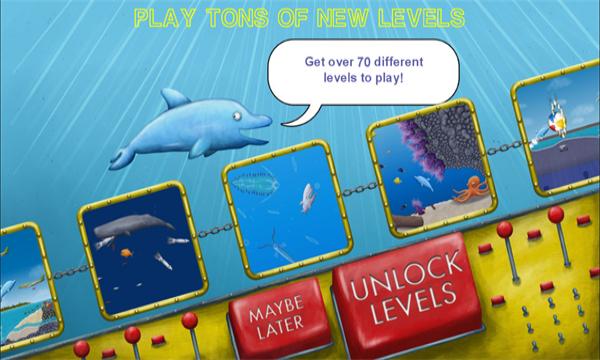 4、小鱼进入海洋后会遇到很多比自己大的鱼类,我们需要一边躲避大鱼的追捕,一边吞噬小鱼进化。