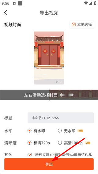 6、在导出视频页面设置封面、标题等,点击导出完成视频导出。