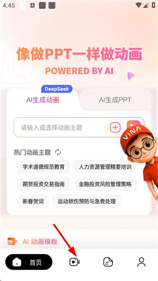 3、在创作动画视频页面选择比例后,点击立即创建进入创作界面。
