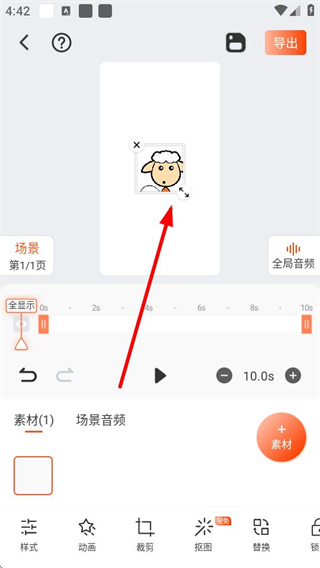5、添加素材后可选择图片,拖动右下角缩放按钮即可调整图片大小。