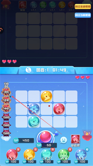 3、当火力不足时,消耗SP能量召唤更多球球,增强战斗阵容,应对更强的敌人。