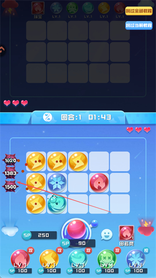 1、在棋盘上放置不同类型的球球如攻击型、辅助型,球球会自动攻击敌方目标,造成伤害。