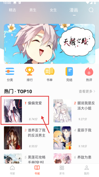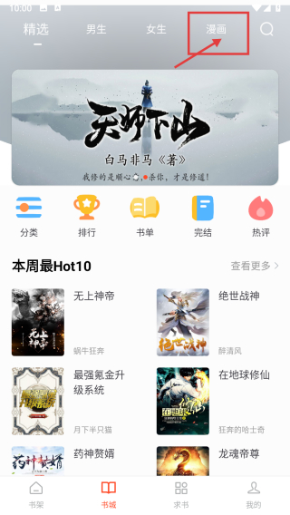 2、在书城页面,点击漫画分类标签,进入漫画分类列表页面。