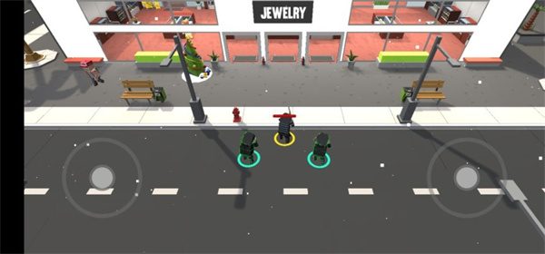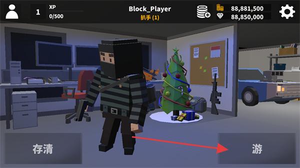 整体采用方块元素构建场景与角色,城市场景、各类道具及敌人都以方块造型呈现,风格独特且充满创意,视觉上简洁明快,打造出辨识度极高的游戏世界。
