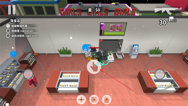 2、在珠宝店内,点击互动按钮,破解保险箱,同时注意店内的安保人员。