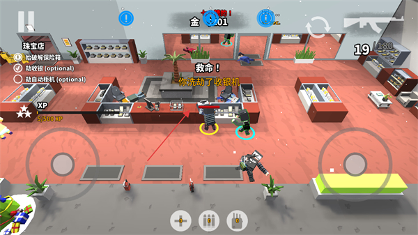4、成功破解保险箱或触动收银机后,获取金币和经验奖励,提升角色等级,继续挑战其他抢劫目标。