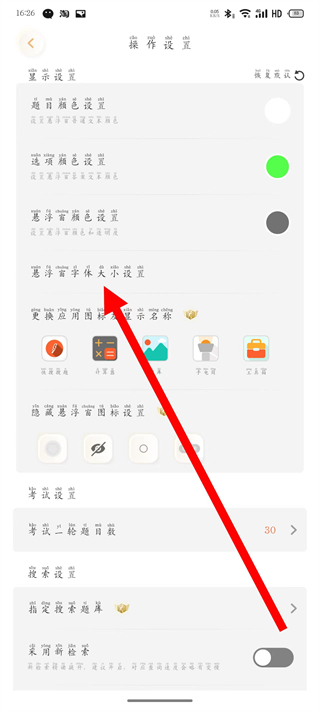 3、在操作设置页面,点击悬浮窗字体大小设置。