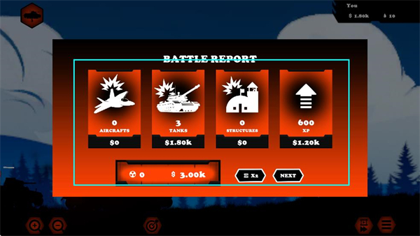 4、查看弹出的Battle Report界面,了解飞机、坦克、建筑的战绩及获得的XP和金钱。