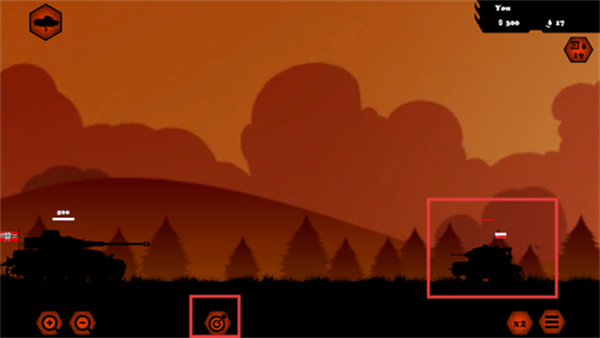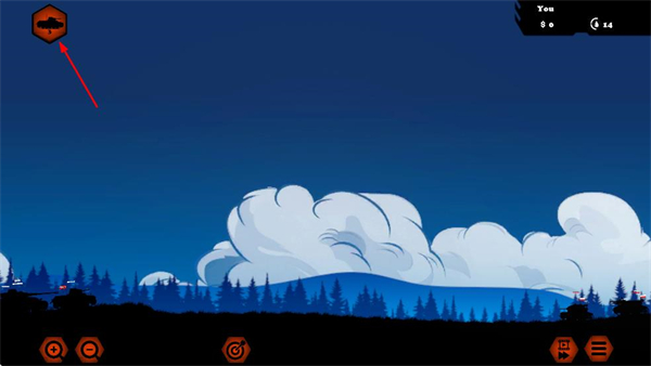 3、在战斗场景中,点击左上角的坦克图标,参与坦克对战操作。