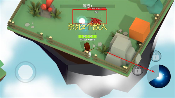 1、通过左侧摇杆控制移动,寻找战场中的敌人。