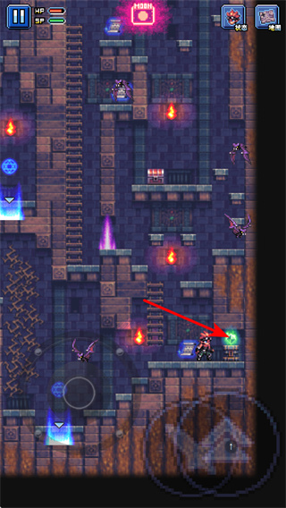 2、收集如绿色水晶之类的资源,提升角色属性或解锁新能力,这是增强战力的关键操作,需探索地牢的各个角落以获取资源。