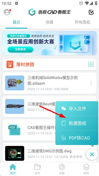 支持通过微信、QQ、邮件等方式快速交互分享CAD图纸,可将DWG格式转换为PDF或图片格式,适配不同场景下的图纸传递需求,无需额外转换工具。