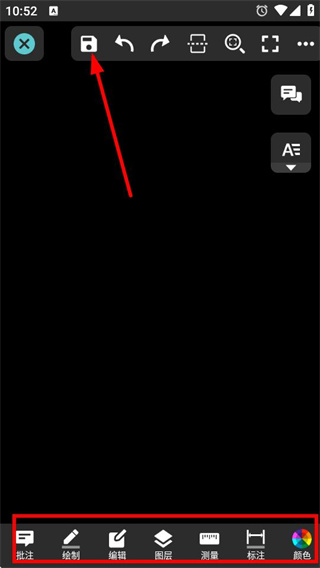 3、可利用下方功能按钮如批注、绘制进行编辑,编辑完成后点击保存图标按钮,即可保存新建图纸。
