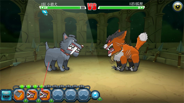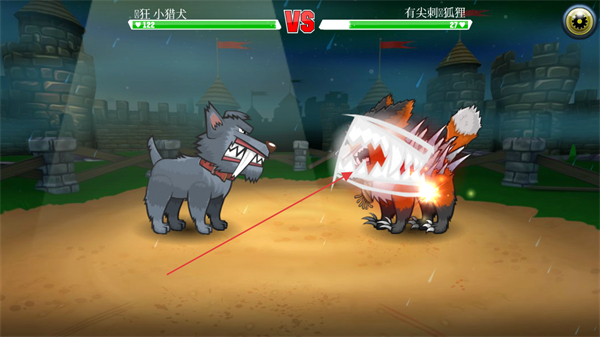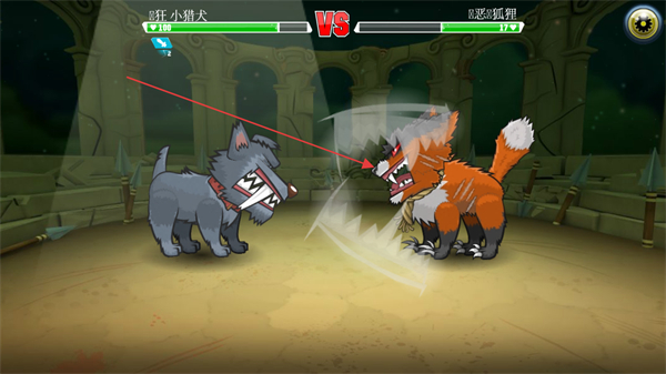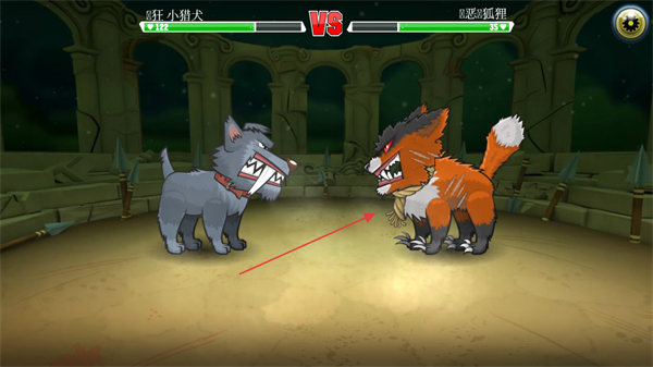 1、操控疯狂小猎犬与凶恶狐狸在竞技场对战,观察对手状态,准备发起攻击。