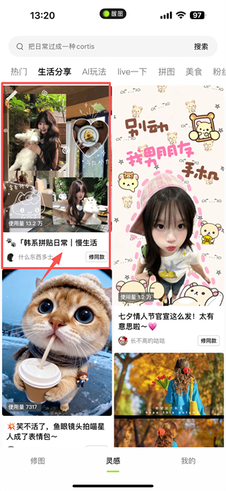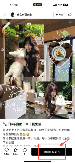 4、在模板详情页,点击修同款按钮,开始制作同款韩系拼贴风格图片。