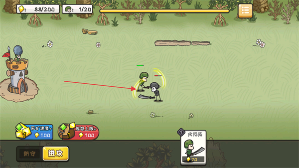 1、派遣持刀小兵攻击敌方单位,消耗其兵力,推进战线。