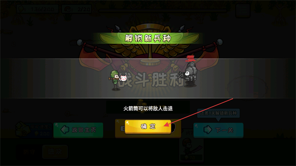 4、解锁火箭筒兵种,其可将敌人击退,点击确定,利用新兵种增强战力。