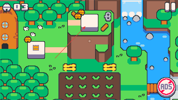 1、打开游戏进入像素风格的游戏世界,点击地图上的白色方块进入游戏关卡。