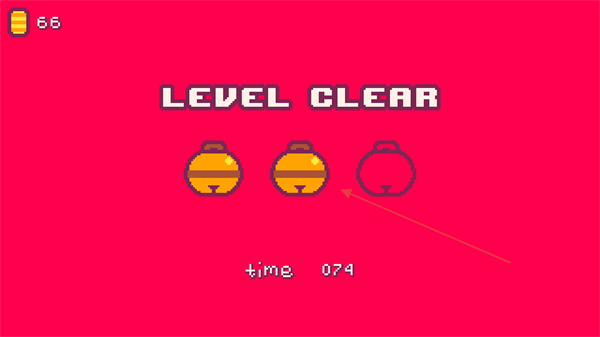 4、到达终点即为过关,结算页面会显示关卡内获得的金币铃铛数量和通关用时。