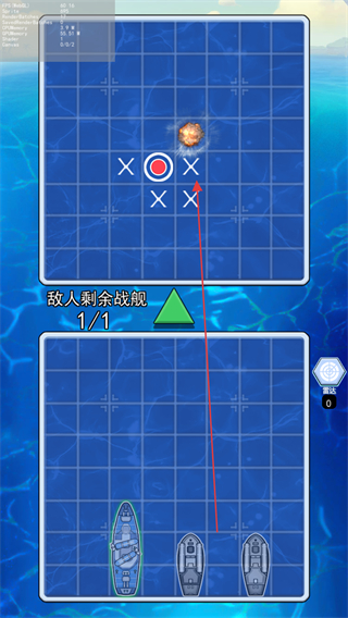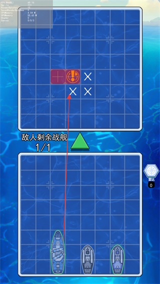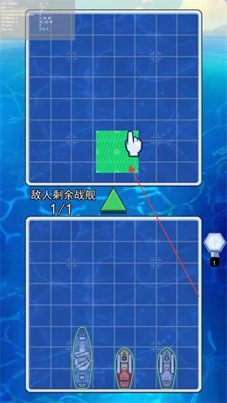 1、观察敌方战舰可能的位置,点击方格进行猜测攻击。
