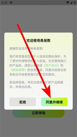 1、打开甬藏通,在弹窗中,点击同意并继续。