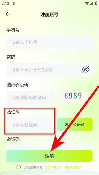 4、输入验证码后,勾选已阅读并同意相关协议,点击注册,完成操作。
