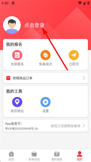 2、在我的页面,点击点击登录,进入登录选择页面。