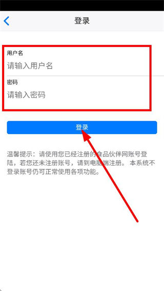 3、在登录页面,输入用户名、密码后,点击登录,完成登录操作。