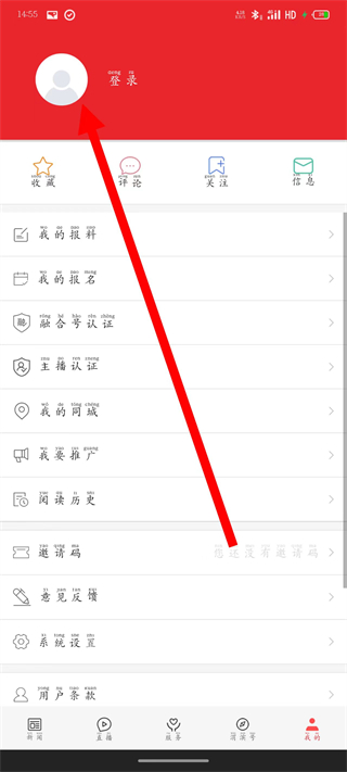 2、在个人中心页面,点击头像区域的登录入口,进入登录界面。